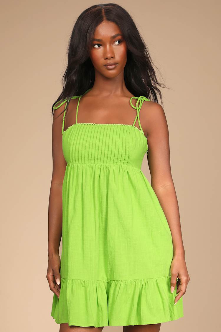 Lime Green Mini Dress Babydoll Mini Dress Tie Shoulder Dress Lulus