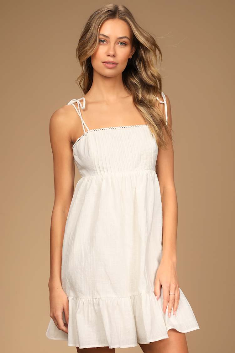 White Mini Dress Babydoll Mini Dress Tie Shoulder Dress Lulus